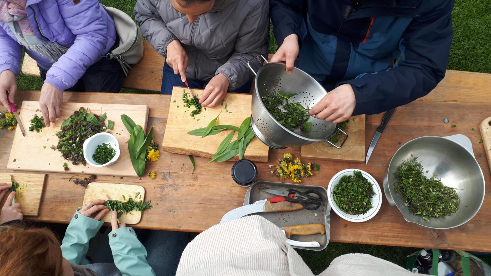 Am letzten Samstag hat eine Gruppe interessierter Menschen, die Solawi-Wiese nach Wildkräutern durchforstet, die schönsten Exemplare gesammelt und zu leckeren Gerichten verarbeitet.